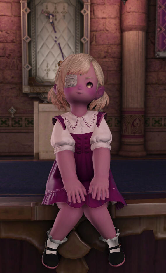 In her final moments at Castrum Meridianum, Livia sas Junius was caught up in a nightmare - the memory of crying over her parents' fallen bodies as a little girl, her own face disfigured by their killers haunting her as the fear her father Gaius, too, would die and leave her alone once again.This nightmare followed her into the Lifestream, and she set herself to the unenviable task of climbing her way out of the Palace of the Dead in the hopes of returning to his side, undeterred by the seeming hopelessness of her mission. Recognizing this drive to do the impossible, Hydaelyn tempered Livia and gave her Her blessing before returning her to life. Having retained her sense of self in the Lifestream by clinging to her childhood memories - both of that trauma and the comfort she'd found afterwards in her father's arms - reborn, Livia found herself in the body of the little girl she'd once been, dropped at the feet of a woman she'd tortured only a few sennights past.Minfilia held out her hand, and helped the girl to her feet.Without a doubt the Scions' most dubious acquisition, Livia Baelsar now works tirelessly in service of the will of Hydaelyn alongside Her other Warriors of Light - but she hasn't forgotten her own mission. She'll find her father, whatever it takes.